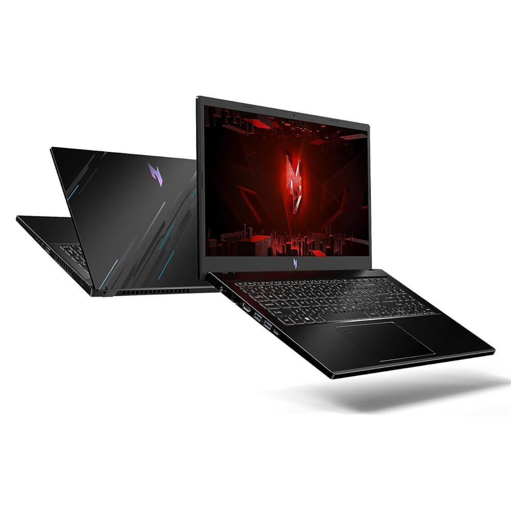 Acer Nitro V mang phong cách thiết kế hầm hố với những đường cắt góc cạnh tạo cảm giác mạnh mẽ và đậm chất game thủ. Máy có trọng lượng khoảng 2.1kg và độ dày 26.9mm, tương đối nhẹ trong thế giới laptop gaming, phù hợp cho nhu cầu di chuyển thường xuyên như đi học, đi làm hay mang theo khi thi đấu.